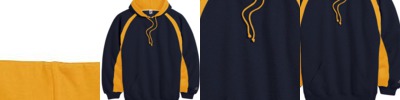 - Two-ply hood with rib trim, contrast color liner and drawcord