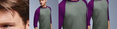 - Contrast color set-in collar and three-quarter length raglan sleeves