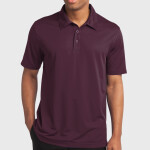 5.1 oz./yd2 / 172 gsm, 100% polyester face plaited to 60% polyester, 40% cotton back (total overall garment 61% polyester, 39% cotton) with moisture-wicking performance; Proprietary dual-sided mesh pique knit constructed of fine denier wicking polyester on the outside and soft-as-cotton wicking blend on the inside; Matching flat knit collar; Luxury, comfort and performance in one; Three-button placket; Dyed-to-match buttons;