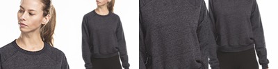 6.5 oz., 50% polyester, 38% cotton, 12% rayon; Tri-blend sponge fleece; Made in USA; Closest to a junior fit;