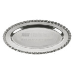 The cast aluminum Masthead Medium Oval Tray has a beautiful rope edge and makes a nice way to recognize a special occassion. Each tray features a Texas A&M Engineering logo using diamond drag engraving. Platter measures: 14.5" L x 10" W x 1" H