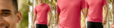 - 4.4-ounce, 75/13/12 poly/cotton/rayon jersey with PosiCharge technology