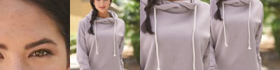 • Hex shaped overlapped collar with heather body colored front V-neck