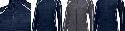 100% polyester; Dry-Excel™ bonded polyester is a scuba bonded fabric featuring a tonal striation with DWR (Durable Water-Resistant) finish for weather resistance and microfleece lining for maximum warmth; Storm Dfend™ Technology features durable water-resistant finish keeps you dry while knit soft shell breathes to keep you comfortable; Poly/spandex storm cuffs for added weather protection and comfort ; Ladies' fit; Woven label; Full front zipper with reflective zipper pull; Storm flap and zipper garage to keep elements out;