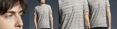 - Single-needle topstitched front neck with ½” rib v-neck collar