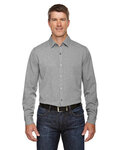 100% polyester mechanical stretch two-tone melange; 2.9 oz./yd2/97 gsm with moisture wicking performance; two-tone mélange fabric; hidden button-down collar; back yoke with side pleats; double-needle flat-felled side and underarm seams; tailored adjustable cuffs with buttoned sleeve plackets;
