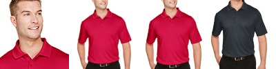 5 oz./yd2 / 172 gsm, 100% polyester face plaited to 60% polyester, 40% cotton back (total overall garment 61% polyester, 39% cotton); Proprietary dual-sided mesh pique knit constructed of fine denier wicking polyester on the outside and soft-as-cotton wicking blend on the inside; Moisture-wicking performance with UV 15-39 protection; Matching flat-knit collar with contrast double tipping; Side vents; Active fit; Easy care;