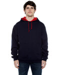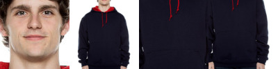 9.25 oz., 55% cotton 45% polyester heathered fleece; 1x1 yarndyed cuffs and waist; Lapover neckline with contrast lined hood; Set-on pouch pocket;