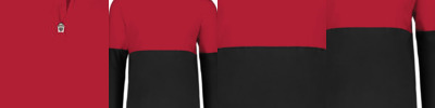 • Ribbed, set-in collar and double-needle, cover-seamed neck with lay flat collar