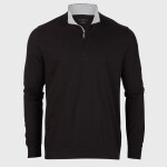 • 1x1 rib knit neckband, placket, sleeve cuff and hem