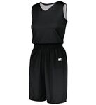 * 12 ounce per linear yard, 100% polyester stretch double knit * Ladies' fit * "R" RUSSELL back pocket * Tunnel belt loops * Two-snap closure * Zipper fly * Low rise, stretch elastic waistband for better movement and silicone gripper to keep your jersey in * Two set-in back pockets with zipper closure * Mesh back yoke and crotch * Knee length * Elastic cuffs