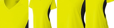 100% performance polyester interlock; Stain- and odor-resistant; Ultra tight knit resists snagging; Self-fabric narrow hemmed crewneck; Hemmed bottom and sleeve; Moisture management wicks away perspiration from the skin; The moisture evaporates quickly from the fabric surface;