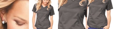 The tee takes a turn toward feminine with a flattering fit and V-neckline.